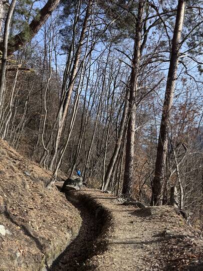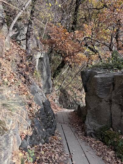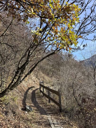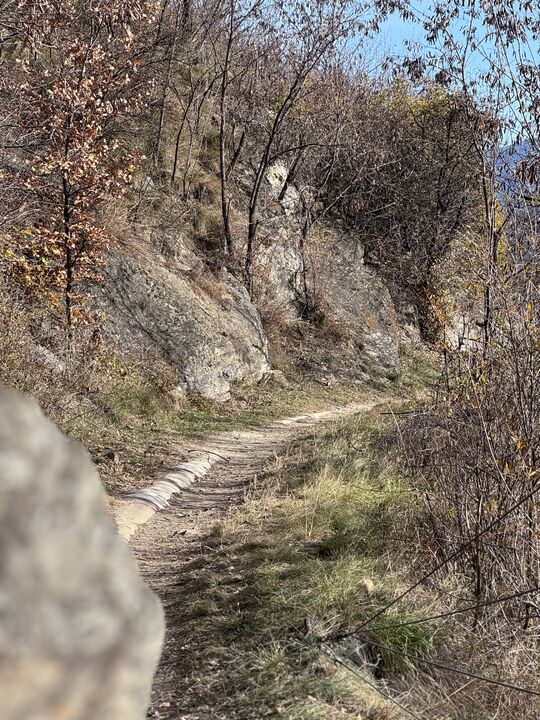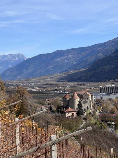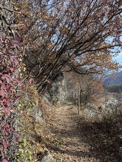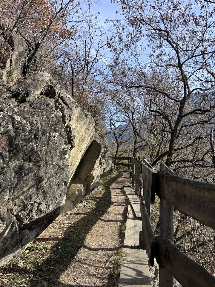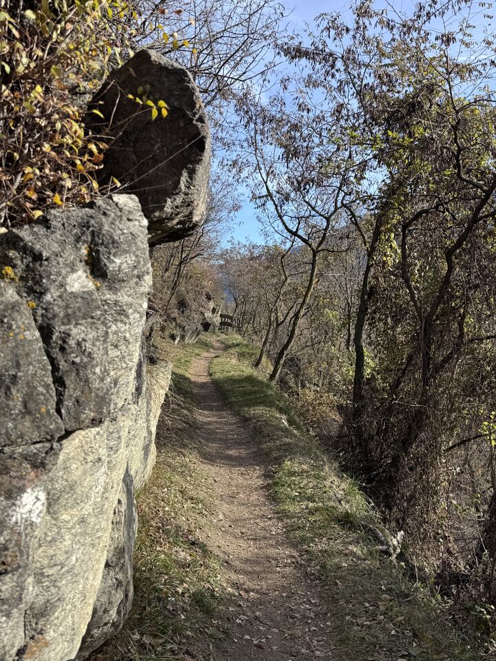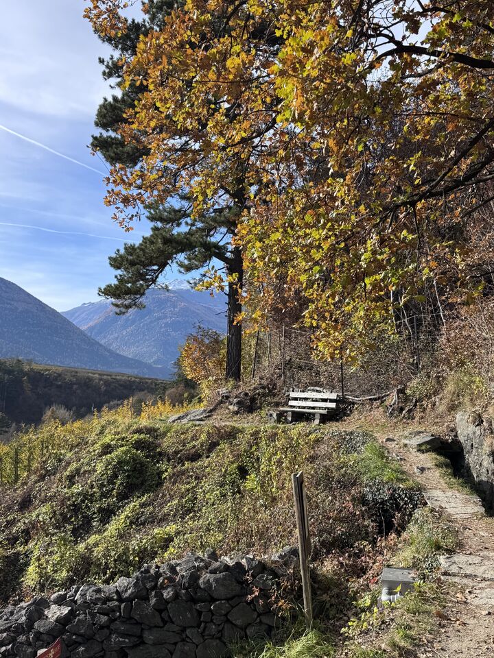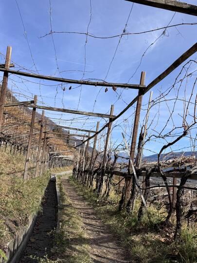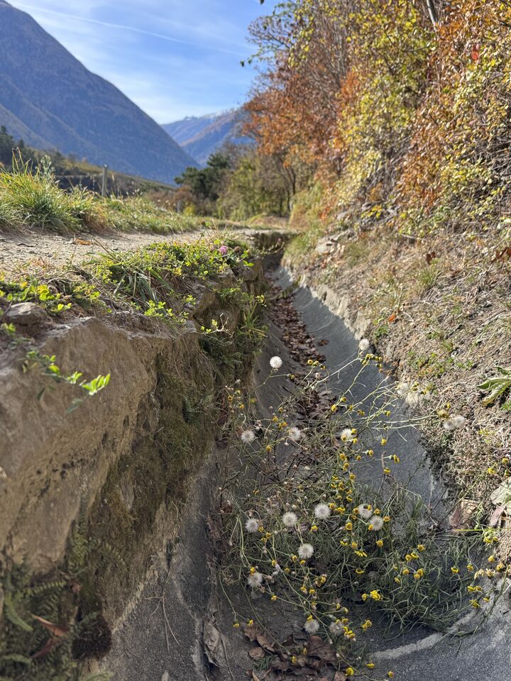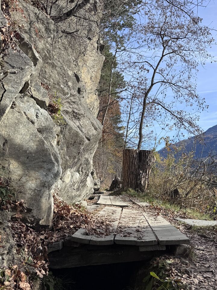 Der Latschander Waalweg zeigt sich im Winter von seiner stillen, fast poetischen Seite. Statt plätscherndem Wasser begleiten sanft fallende Blätter den Weg. Der Waal liegt in dieser Jahreszeit leer und wirkt wie ein ruhender Zeuge alter Bewässerungstradition. Zwischen kahlen Bäumen und klarer Winterluft öffnet sich ein weiter Blick über den Vinschgau. Eine stimmungsvolle, ruhige Wanderung – perfekt für alle, die die stille Schönheit des Winters suchen. HoiDU startet an einem sonnigen Tag in Latsch. Wir überqueren die Straße auf der höhe vom Kreisverkehr und begeben uns in dieses stimmige Abenteuer.