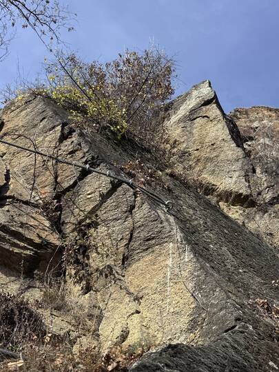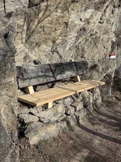 Beim Abstieg kommen wir an einem wunderschönen klaren Bergsee vorbei, bevor der Weg durch eine gewaltige Felsschlucht führt. An manchen Stellen ist der Steig etwas steiler, aber mit Seilsicherungen und Stufen gut begehbar. Kurz vor der Hängebrücke endet die spannendste Passage.