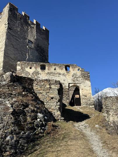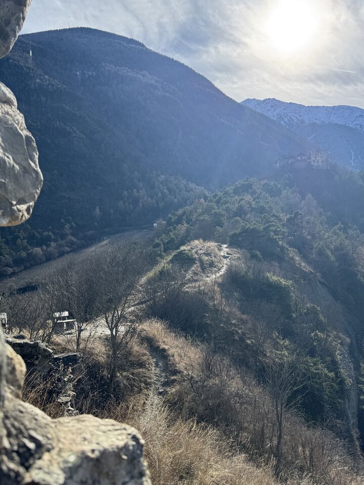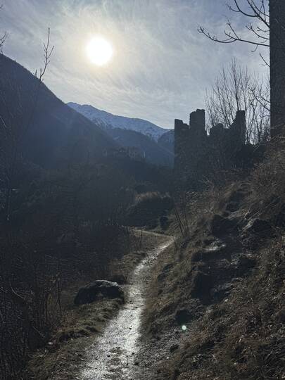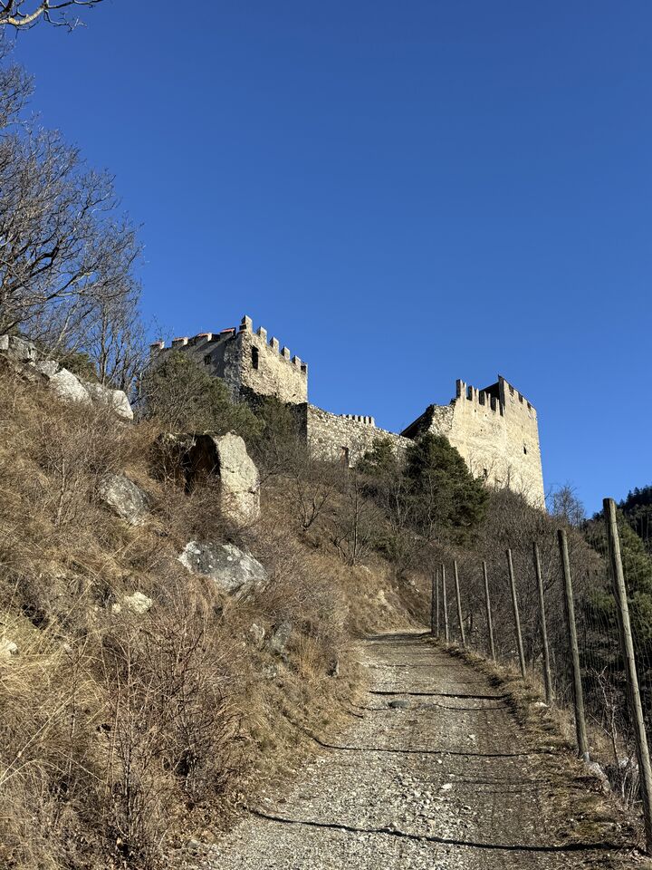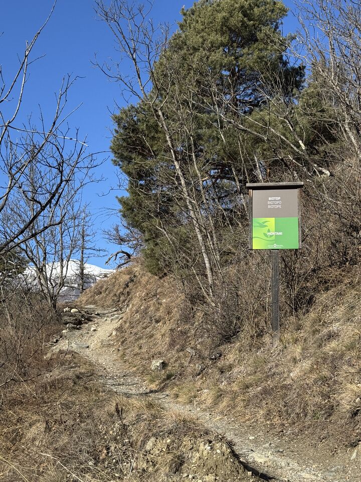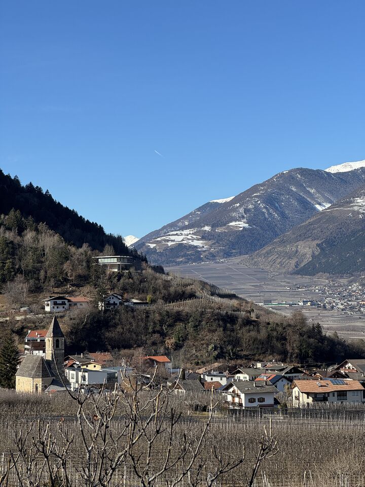 Der Latschander Waalweg zeigt sich im Winter von seiner stillen, fast poetischen Seite. Statt plätscherndem Wasser begleiten sanft fallende Blätter den Weg. Der Waal liegt in dieser Jahreszeit leer und wirkt wie ein ruhender Zeuge alter Bewässerungstradition. Zwischen kahlen Bäumen und klarer Winterluft öffnet sich ein weiter Blick über den Vinschgau. Eine stimmungsvolle, ruhige Wanderung – perfekt für alle, die die stille Schönheit des Winters suchen. HoiDU startet an einem sonnigen Tag in Latsch. Wir überqueren die Straße auf der höhe vom Kreisverkehr und begeben uns in dieses stimmige Abenteuer.