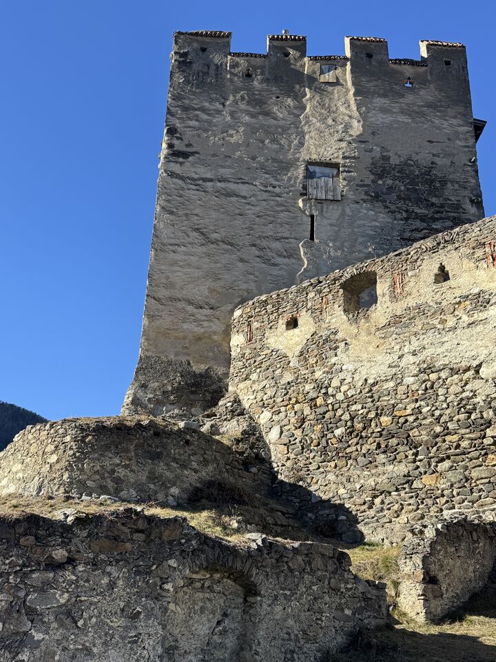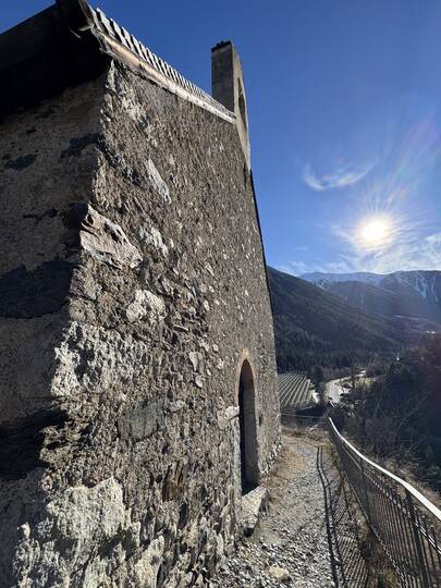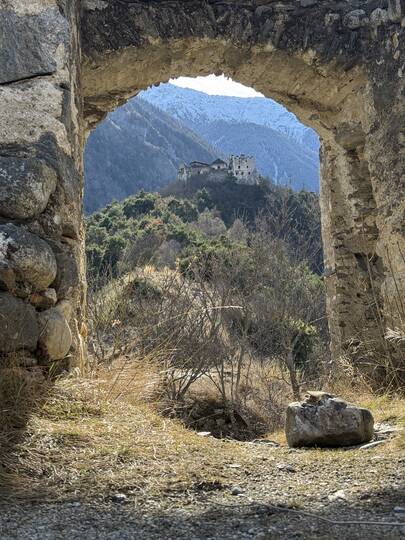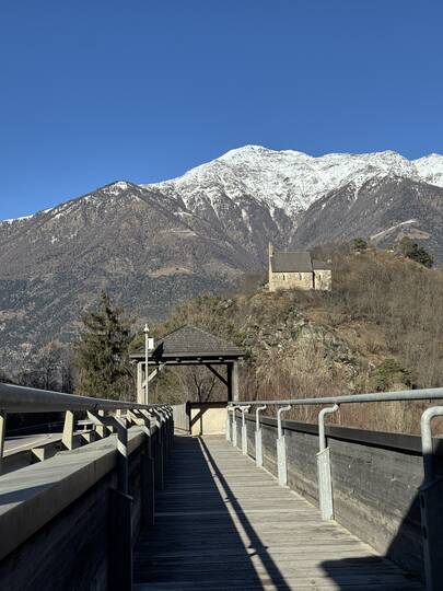 Rundweg Montani (Weg Nr.5) I Start in Morter I über die Plimabrücke und auf geht's zu den Schlössern inkl. St. Stephans-Kirchlein.