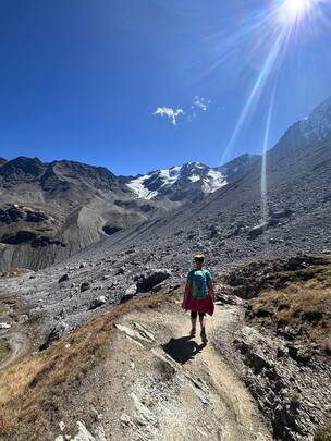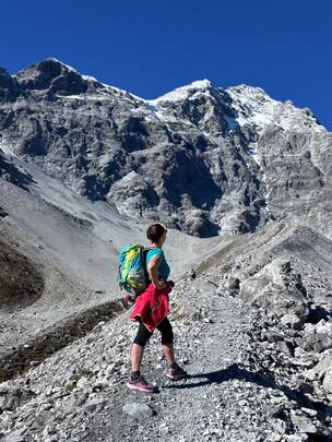 HoiDU wandert in Sulden im Vinschgau. Mit dem Langensteinlift geht es zunächst bequem hinauf auf 2.330 m. Von dort startet eine abwechslungsreiche und stellenweise abenteuerreiche Tour hinauf zur Hintergrathütte (2.661 m).