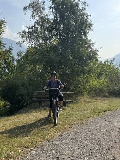 Runter geht’s entweder klassisch über den Forstweg bis nach Morter, oder alternativ eine Kehre tiefer zum Haslhof einkehren. Viele freuen sich auf die Trailabfahrt über den legendären Holy Hansen-Trail (S2) und erreichen so die Ortschaft Göflan. Die Hoi:DU Radler sind über den Talair Wald zurückgeradelt.