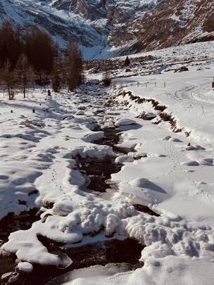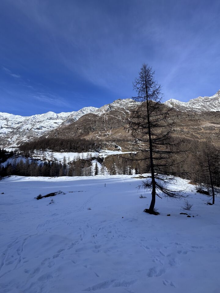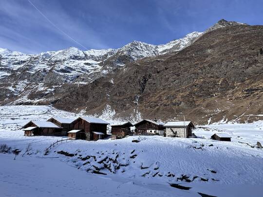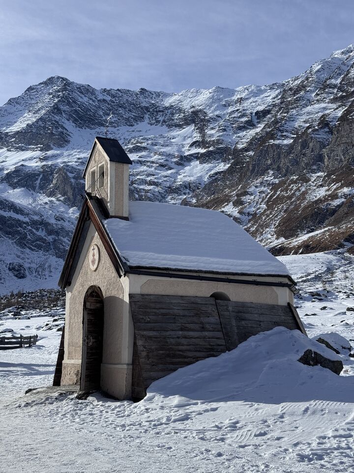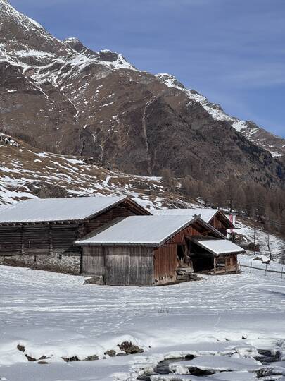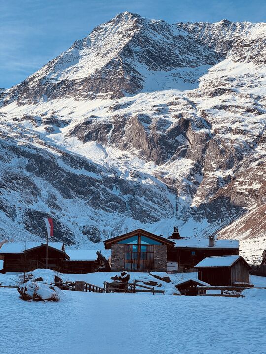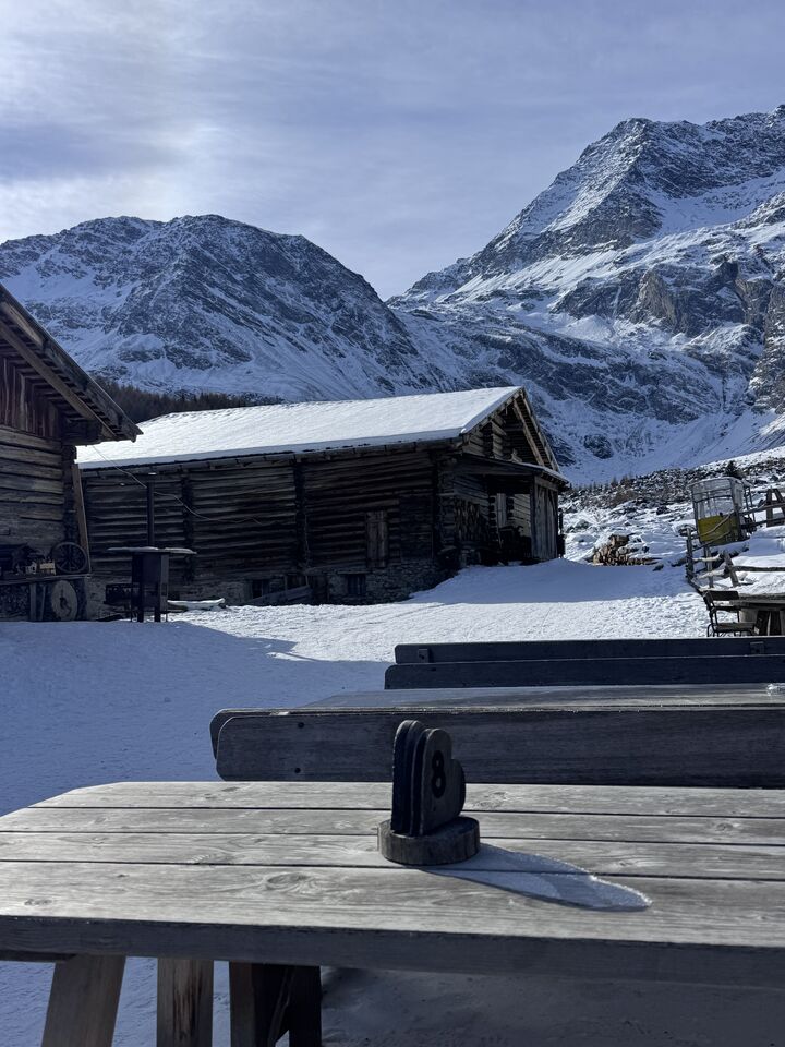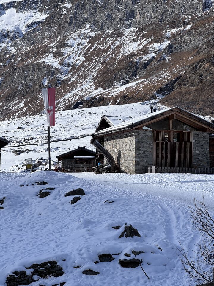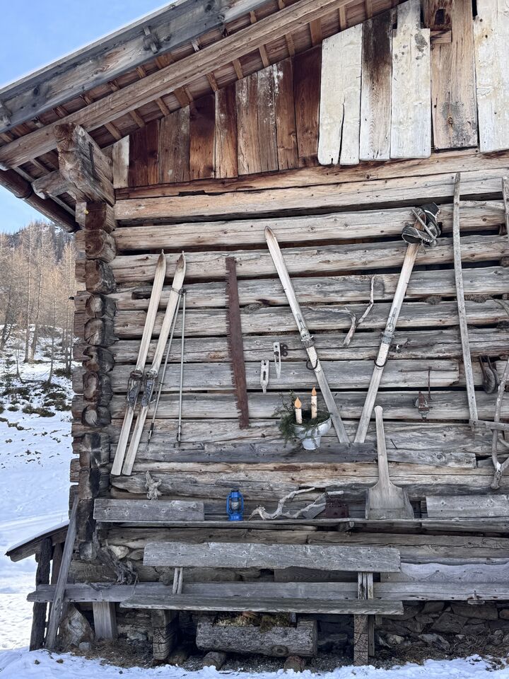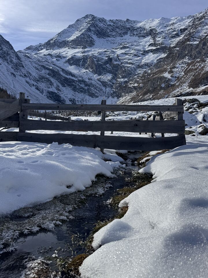 Von der Kurstadt Meran aus geht es mit dem PKW in rund einer Stunde hinein ins winterliche Bergidyll. Ziel ist Pfelders, ein kleines, charmantes Bergdorf, das für Tagesausflügler autofrei ist. Am Parkplatz angekommen, löse ich mein Parkticket für 6 Euro – und schon kann das Winterabenteuer beginnen.
