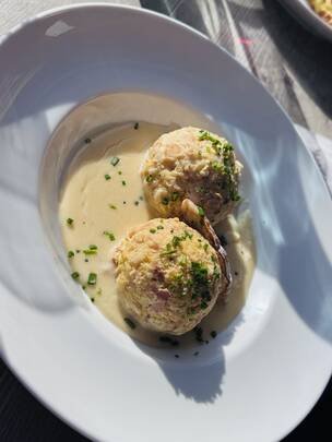 Oben angekommen werde ich im Lazinser Hof von Franz und Doris sowie ihrem Team herzlich empfangen. Die gemütliche Stube, der Duft aus der Küche – genau so stellt man sich eine Winterhütte vor. Ich entscheide mich für eine herzhafte Hüttenomelette, gefüllt mit Speck und Käse. Ein echtes Schmankerl, das nach Bewegung an der frischen Bergluft besonders gut schmeckt.